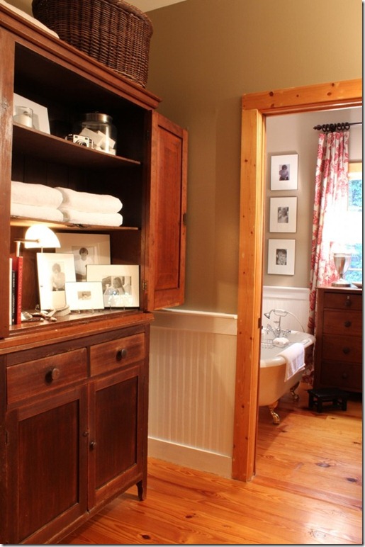 Kelly recently did a post about furniture in the bathroom and then shared hers?.don?t you love how cozy this bathroom is?